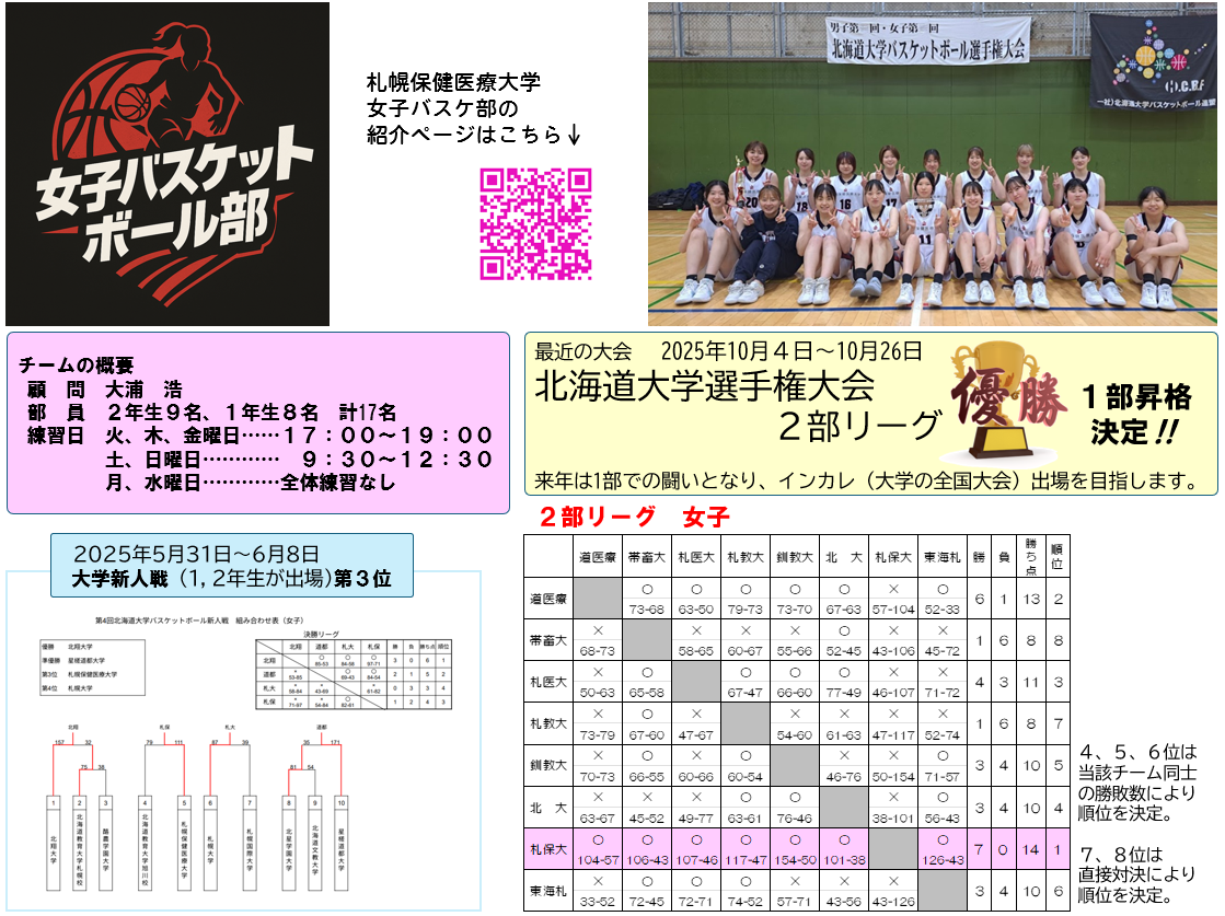 いよいよ札保大女子バスケットボール部、1部リーグに昇格が決定いたしました!