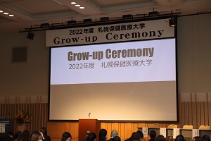 11月5日(土)、看護学科・栄養学科の学生が、学びの専門性が高まる2年次(栄養学科編入生は3年次)に、これまでの学修を振り返り、「人間力のある専門職業人(保健師、看護師、管理栄養士)」を目指すという初志を再確認し、これからの学修に精励することを誓うために、2022年度のグローアップ・セレモニーが開催されました。