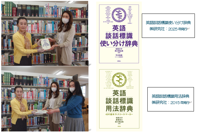 このたび、本学図書館長である松尾文子教授から、『英語談話標識使い分け辞典』(松尾文子・西川眞由美編著、竹中裕貴コーパス情報提供;研究社)を寄贈いただきました。