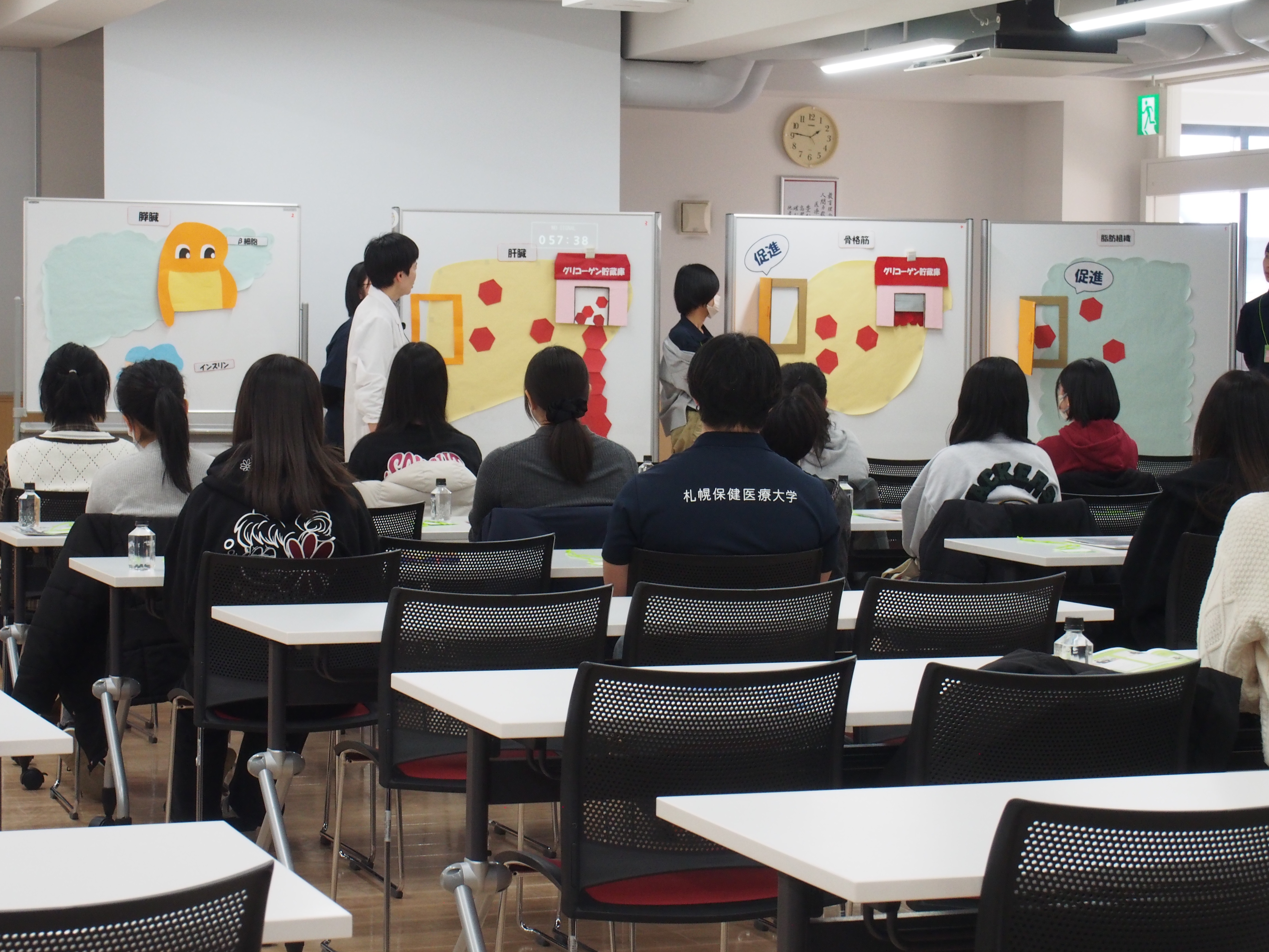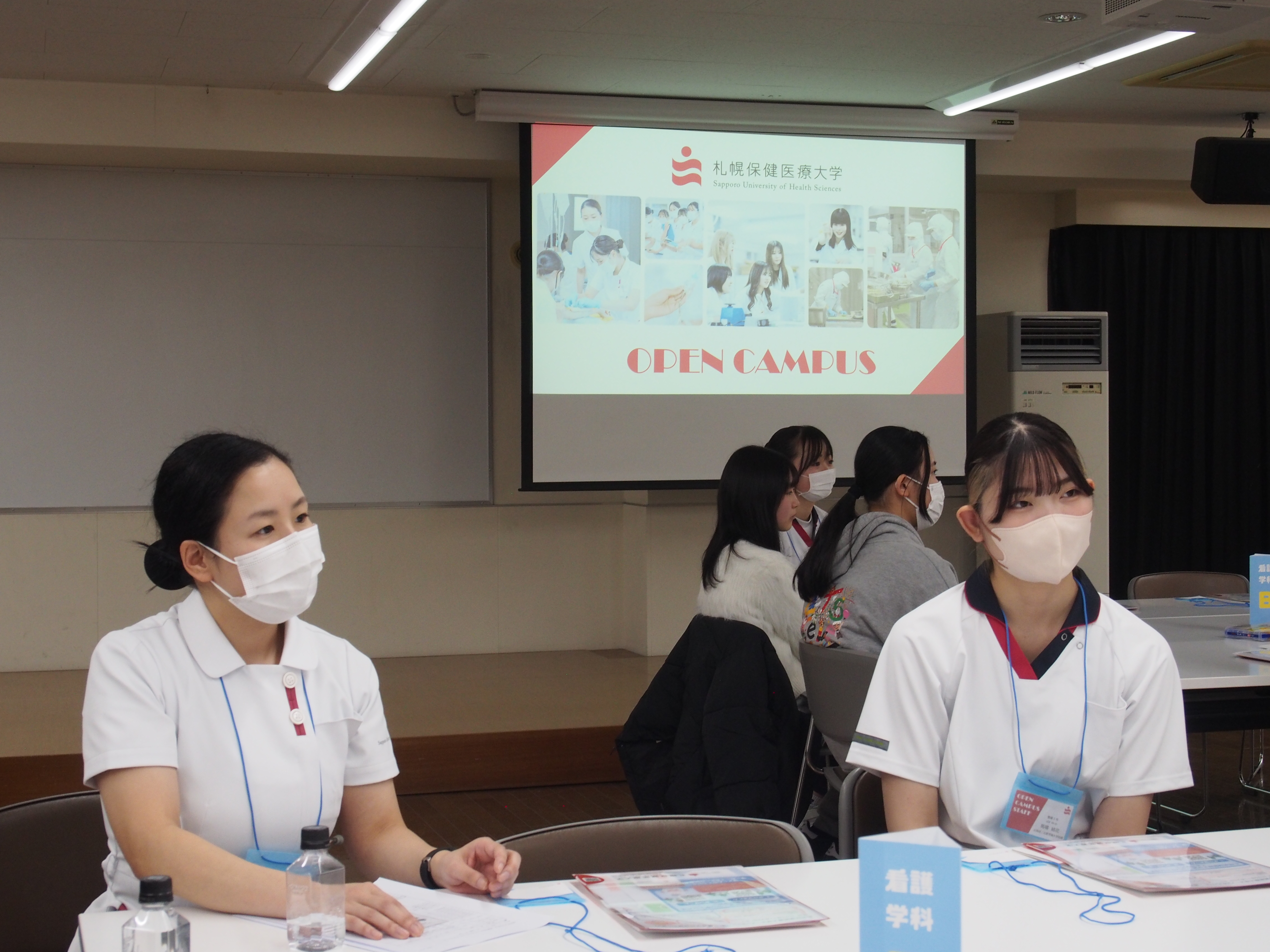 参加者は在学生による実演を見学し、大学での学びについての理解を深めたほか、「先輩トーク」では学生との交流を通して大学の雰囲気に触れ、和気あいあいと会話を楽しみました。