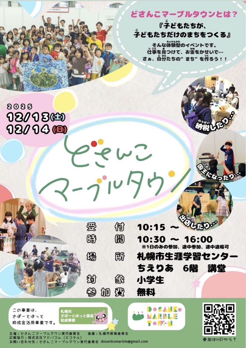 ※「どさんこマーブルタウン」は、子どもたちが、子どもたちの手で仮想の「まち」をつくる社会体験型イベントです