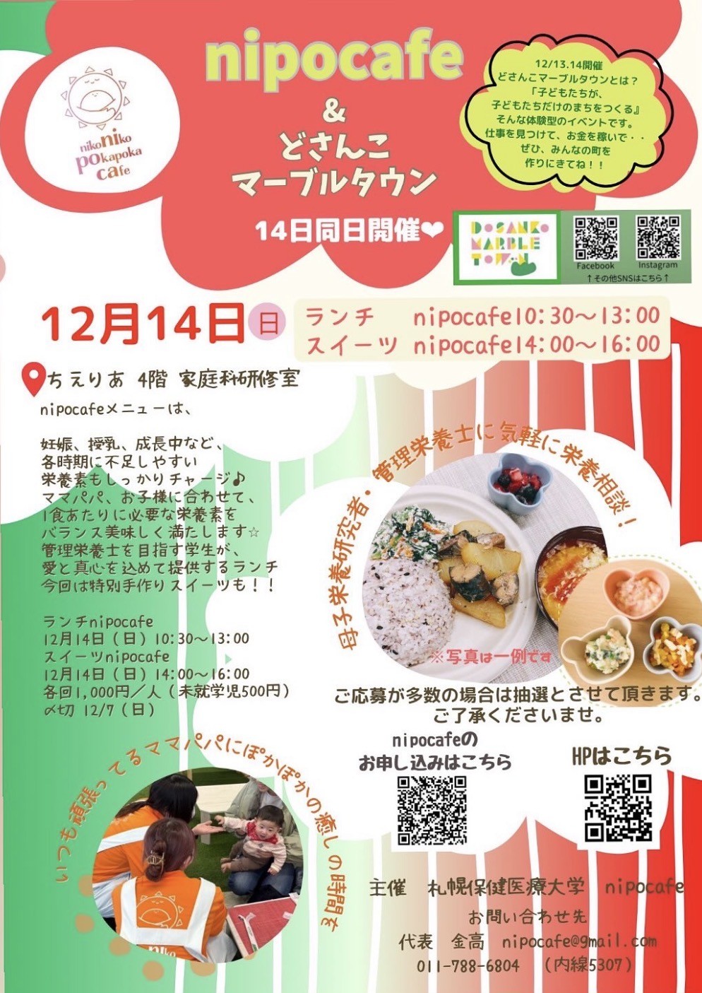 本学栄養学科の金高准教授が学生とともに立ち上げた『nipocafe』サークルでは、母子栄養についての課題解決を目指し、妊娠期から子育て中のお母さんの栄養改善と食育を目的に、管理栄養士の卵である学生と、カフェ型ワークショップを定期的に開催しています。