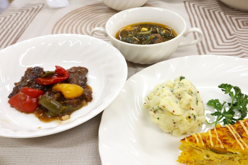 鹿肉を使った「酢鹿」やスープ、大学の農場で育てたじゃがいも・パセリのポテトサラダ、かぼちゃのトルティーヤなどをいただきました!