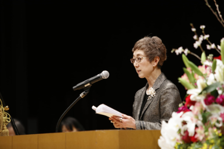 大日向学長からの式辞 大学同窓会会長 田中亜夢様からの祝辞