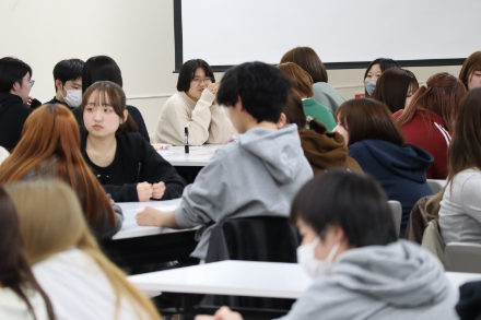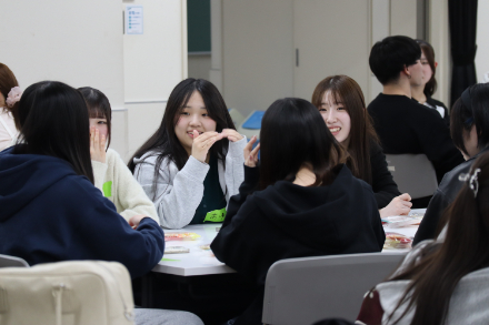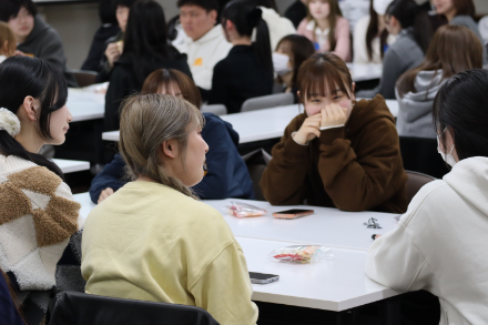 歓迎会では「サークル活動」「学友会」についての紹介が行われ、その後のレクリエーションでは、「クイズ」と「先輩トーク」が実施されました。クイズは札保大に関する問題が出題され、大いに盛り上がりました。また、先輩トークでは、先輩学生との交流を通して親睦を深めることができ、新入生にとって有意義なひとときとなりました。