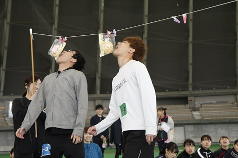 また、今年は、教員が、ドッチボール、チーム対抗リレーに教員チームとして参加、さらに綱引きでは学生の助っ人として参加する場面もありました。